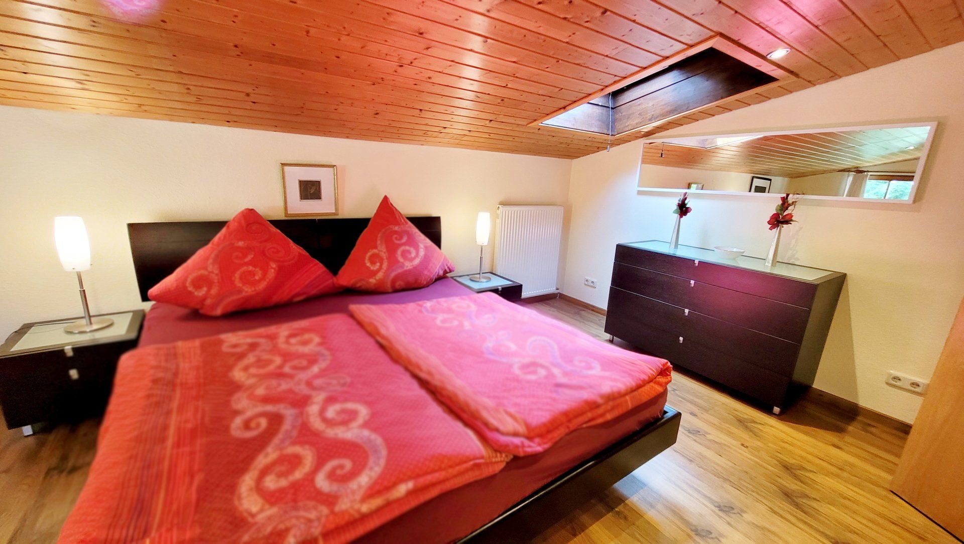 Im größeren der beiden Doppelschlafzimmer (Schlafzimmer 2) befindet sich ein zusätzlicher Flatscreen-TV sowie eine Schlafcouch für eine Person und Kommode. Ein Babybett (Kinderreisebett mit hochwertiger Matratze) kann dazu gestellt werden. Ein drittes behagliches Zimmer ist mit einem Einzelbett im Landhausstil mit Nachttisch und Schrank ausgestattet. Hier ist ein Babybett möglich.